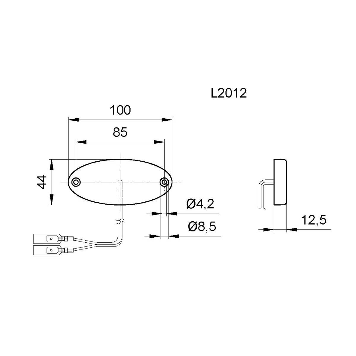 Markeringslygte LED hvid Jokon 2012 PLR B 12V 20cm kabel, Udgår